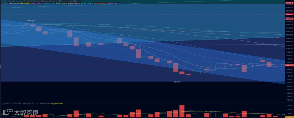 本周BTC开于90364.00美元,收于94181.41,全周上涨0.04%,振幅11.49%,成交量与上周持平。
