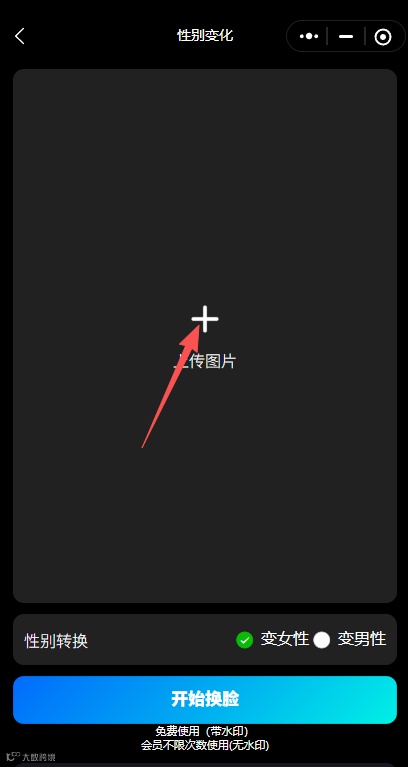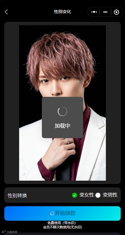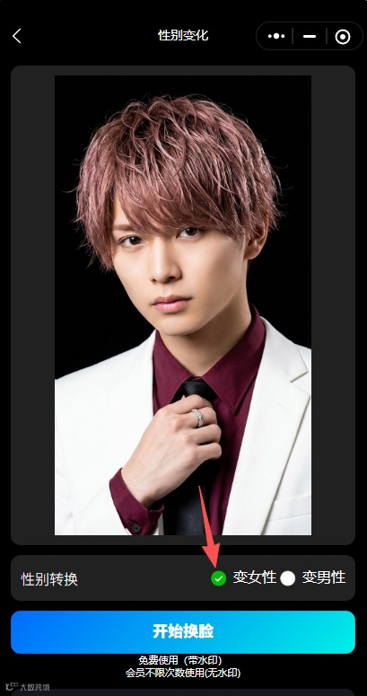 4、上传成功后,点击「性别转换」,选择你要改变的性别