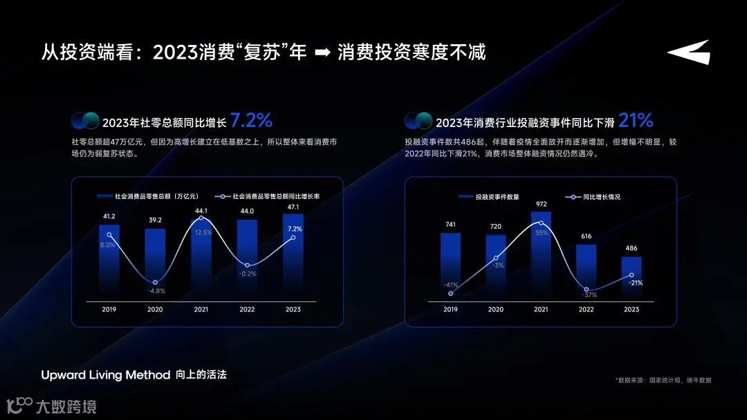从2023年数据来看,虽然社会零售总额呈现了一定的复苏迹象,但2023年消费行业投融资事件同比仍下滑 21%。