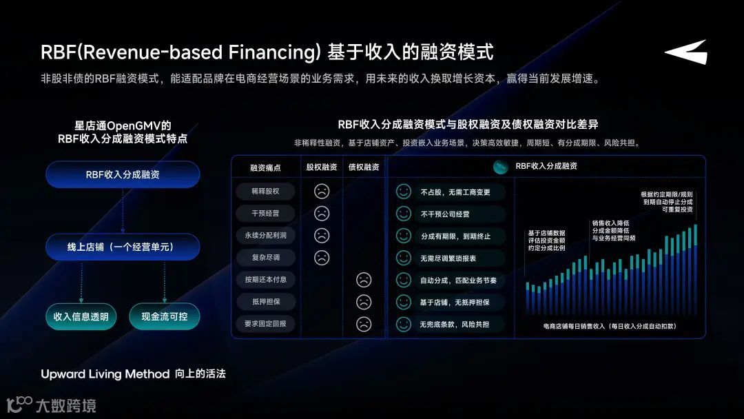 区别于传统的股权投资方式,我们叫RBF(Revenue-Based Financing) 基于收入分成的融资模式。
