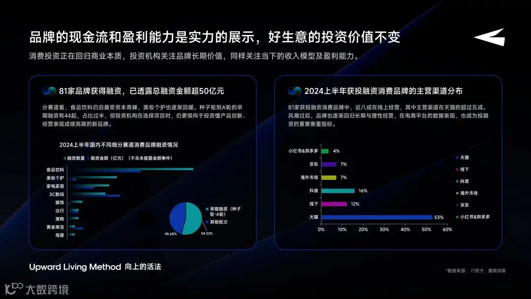 另外,我们从相关报告数据也看到,在获得融资的品牌当中,有近八成在线上经营,其中主营渠道在天猫的超过五成。在电商平台的数据表现,也成为当下投融资的重要衡量指标。这恰好与我们基金的核心投资方向不谋而合。