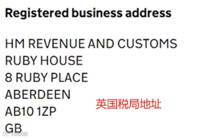- 操作步骤:如果Registered business address(企业注册地址)显示为:AB10 1ZP,则地址类型选择税务机构;如果是其他地址,则地址类型选择税务代表。
