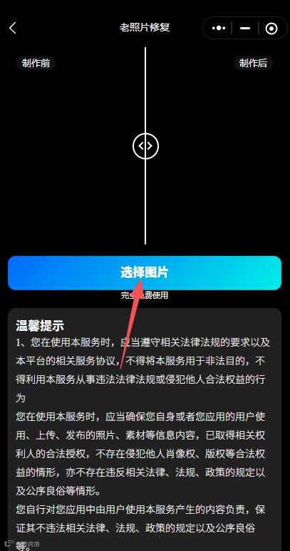 3、再点击「选择图片」,上传一张你要修复的图片
