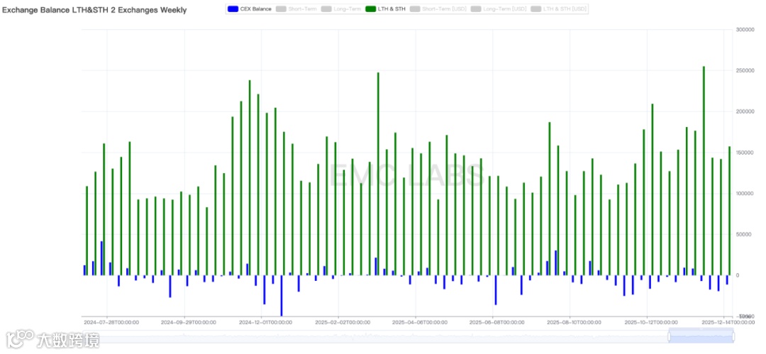 美联储降息及流动性释放,抬升了本周BTC的价格底部;AI科技股财报不达预期继续挤压高β资产估值,抑制了BTC的上行空间。最终,BTC在试探上周高点之后,继续维持中期“探底”态势。