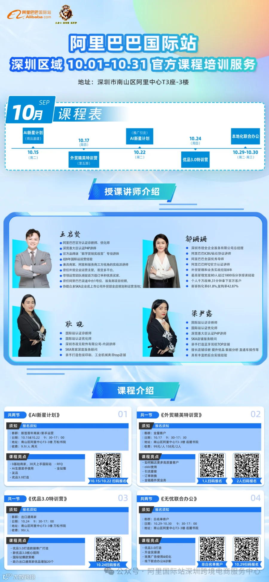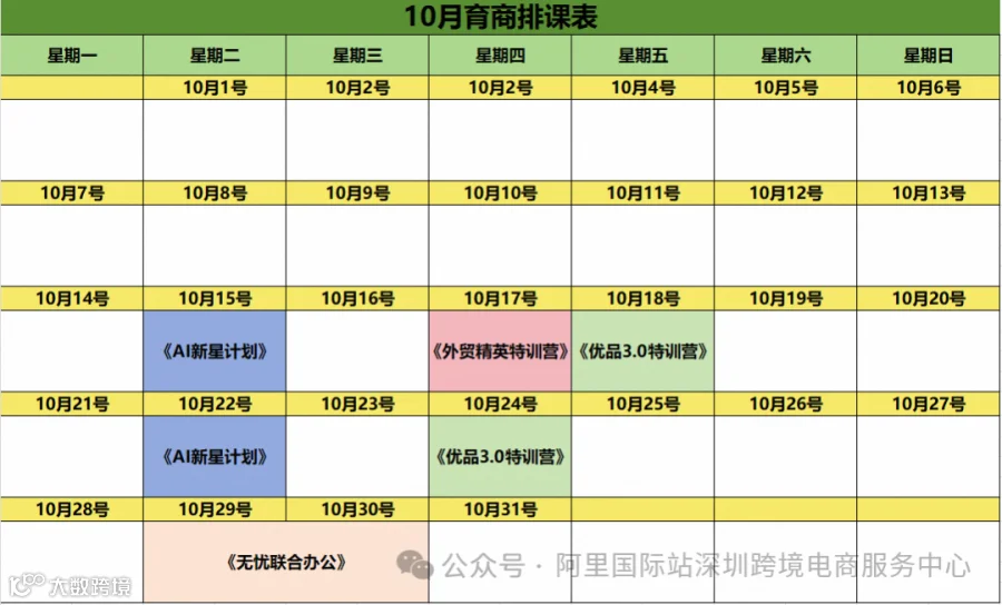 导读:阿里国际站深圳跨境电商服务中心十月份育商排期及活动海报