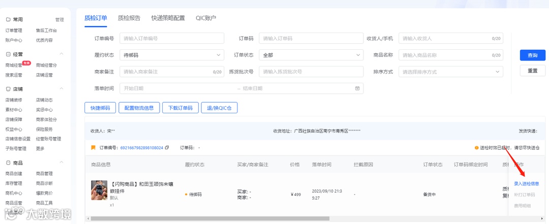 (1)登录抖店后台,进入“QIC质检”菜单;