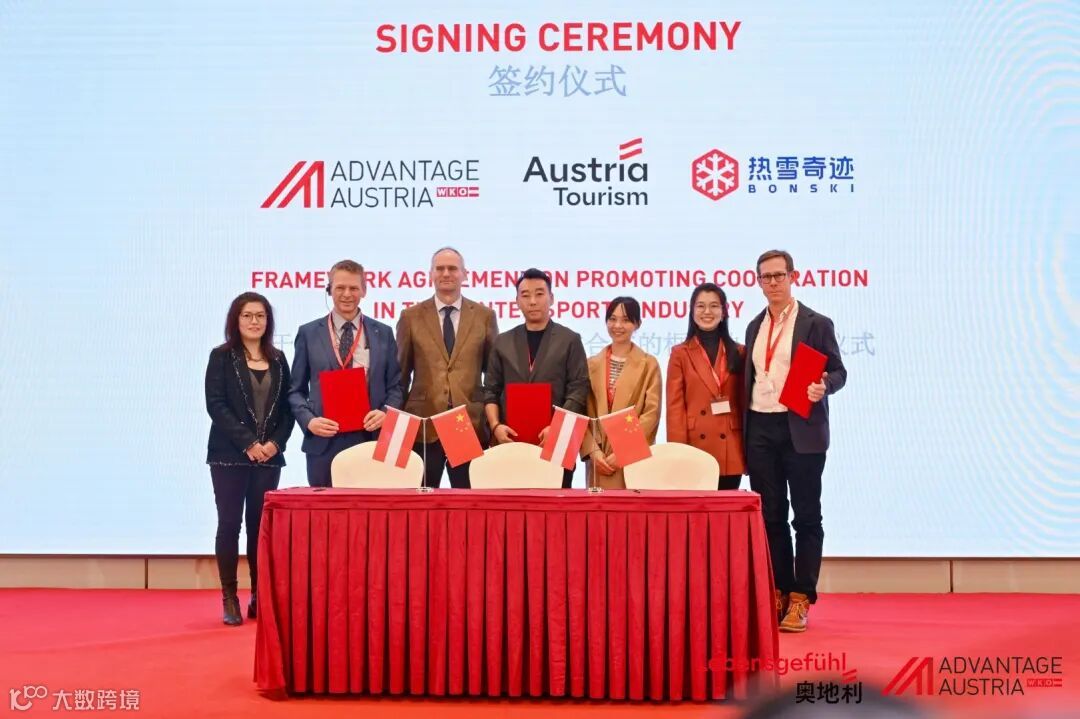 在高峰论坛上,200余位来自奥地利和中国的政府代表、媒体代表、冬季运动行业业内人士见证了两场重要的签约仪式。奥地利驻华使馆商务处与北京北控文旅有限公司在雪场信息化建设、滑雪教练培训、冰雪赛事、冰雪产业展会等方面达成深度合作意向,共同推动两国在冰雪、旅游度假、会议会展等行业的发展;奥地利驻华使馆旅游处、奥地利驻华使馆商务处与热雪奇迹签署三方战略合作协议,将围绕冬季体育产业的技术交流、旅游推广、人才培养及市场运营多方面展开深度合作,共同促进中奥冰雪产业的资源融合与创新发展。