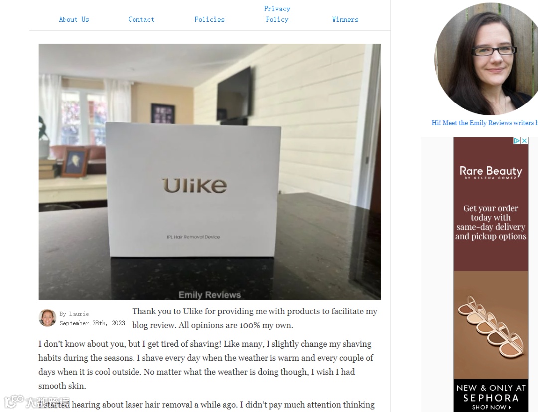 以出海新贵主营脱毛仪的Ulike为例,2023年迎着春季购物大促潮发布全新一代IPL技术加持的Ulike AIR3。与产品发售当日同行的是铺设式的稿件投放,内容围绕Ulike推出新品以及产品介绍,突出IPL技术特点带来短时显著效果。