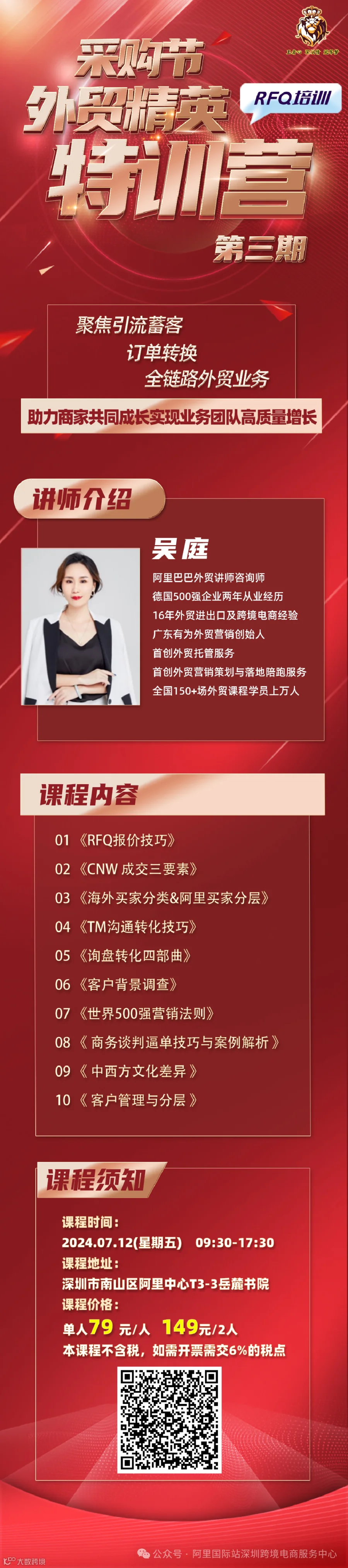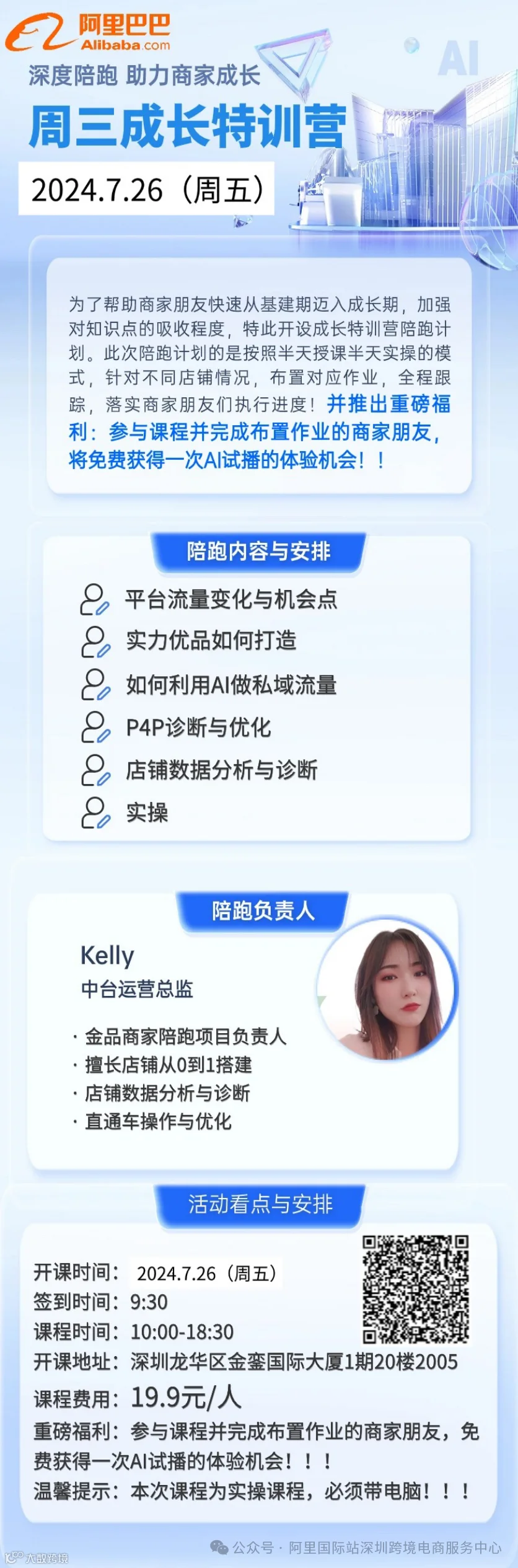 2024年7月阿里国际站深圳服务中心培训排期公布