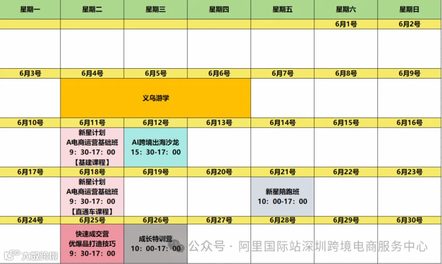 阿里国际站深圳服务中心每月培训信息现已更新,涵盖6月育商课程安排。课程如有调整,将同步更新至本文档,欢迎收藏并及时查阅最新课程内容。