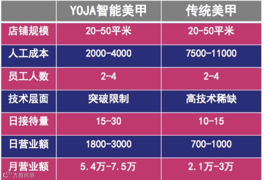 ◆ “YOJA”智能美甲店与传统美甲店各项业务运营数据对比