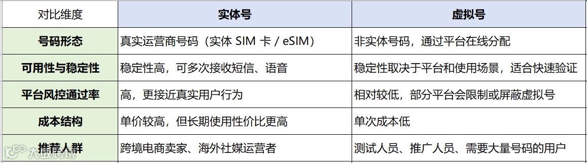 目前常见的海外号码分为实体号和虚拟号,虽然都可以用于接收短信、完成账号注册与验证,但不同号码类型在稳定性、使用周期和适用场景上都存在明显差异。