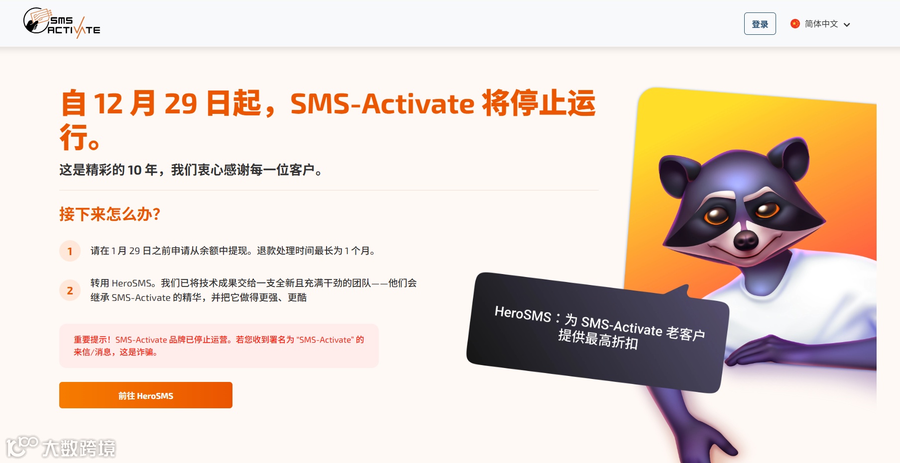 老牌接码平台SMS Activate宣布自2025年12月29号起停止运营,并将相关技术移交至 HeroSMS。