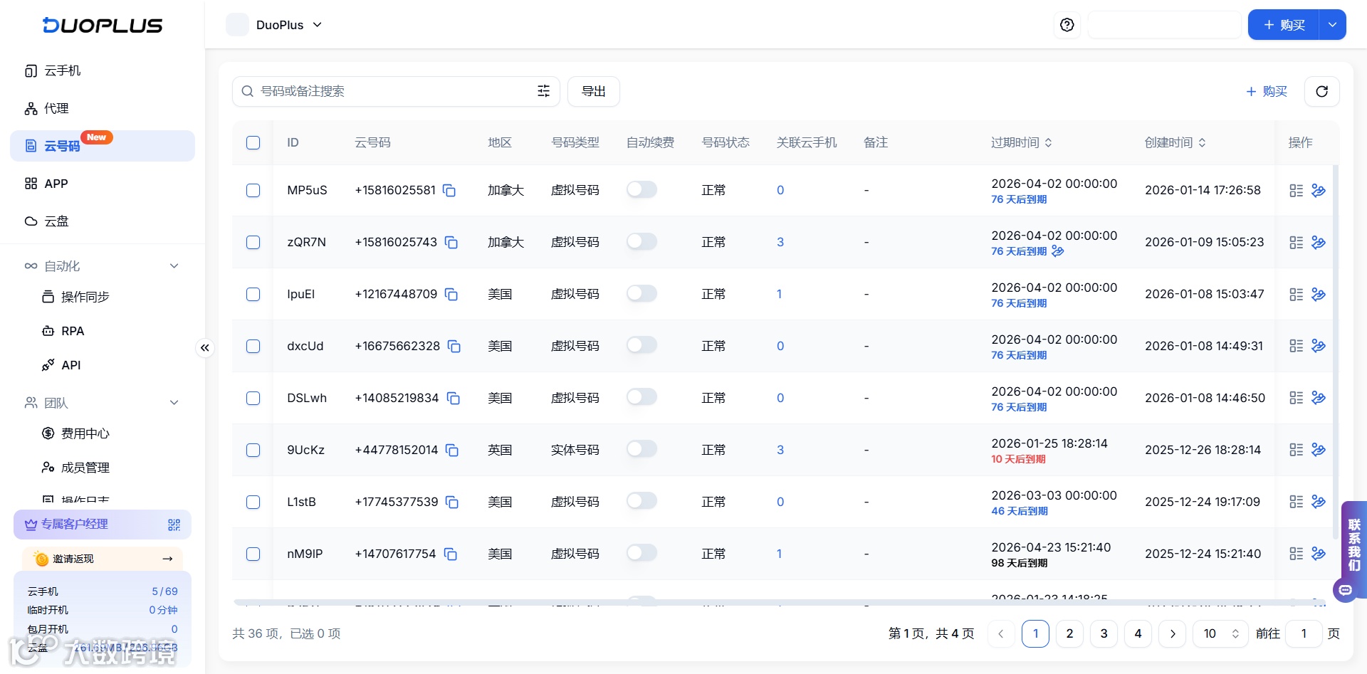 为了满足稳定运营海外账号的需求,DuoPlus 云号码(https://www.duoplus.cn/share/dashukj)不仅提供可长期使用的海外号码,涵盖实体号与虚拟号两种类型,而且号码可以直接与云手机进行关联使用,在注册、登录和运营过程中,让号码始终存在于同一设备环境中。