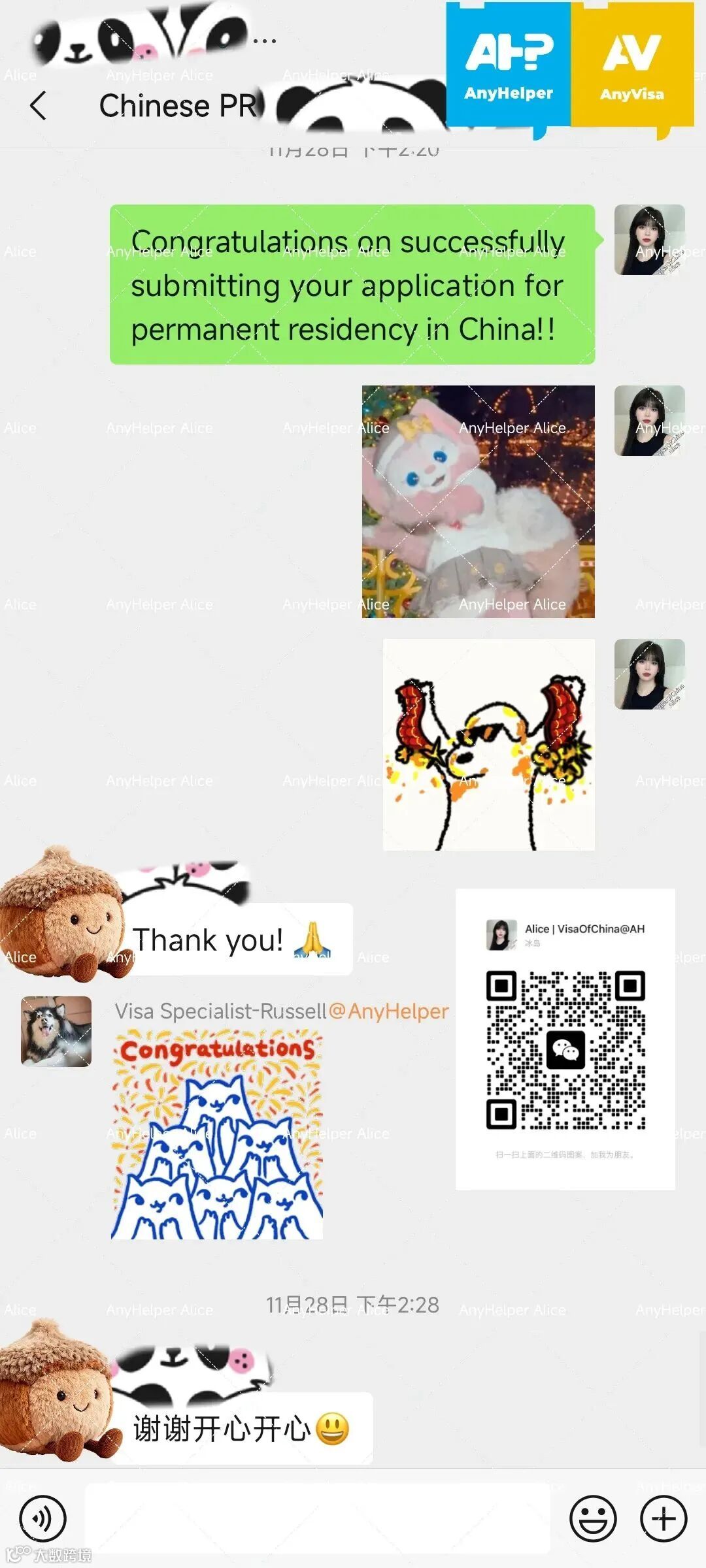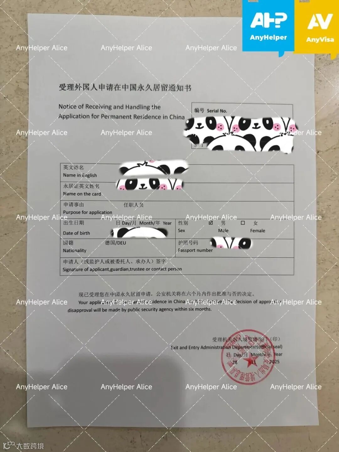 The application has now been successfully submitted, and permanent residency status is expected to be granted next year, offering multiple conveniences such as long-term residence, work, and entry-exit in China.