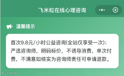 近日,飞米粒心理自主研发运营的“飞米粒在线”心理咨询师预约小程序平台正式成立。该平台的上线,不仅完善了飞米粒心理线上线下联动的服务体系,更为不打算开设独立咨询室的学员搭建了稳定的就业接单渠道,为心理咨询行业人才培育与服务模式创新注入新活力。