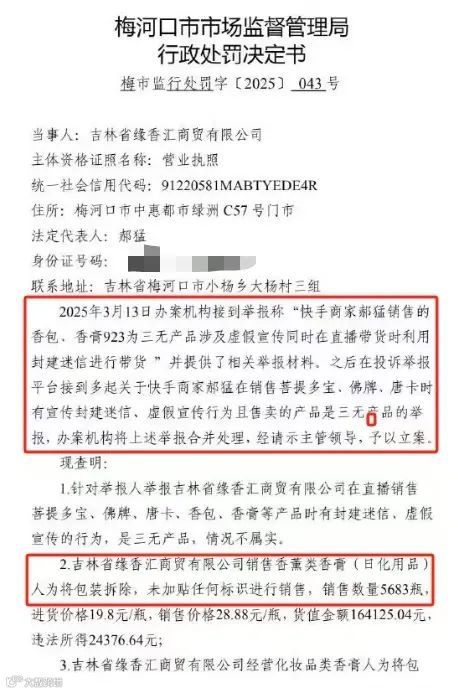 因销售无标签香膏类产品,拥有2500万粉丝的主播遭行政处罚,引发行业信任危机