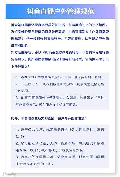 抖音户外直播管理规范(图源:抖音黑板报)