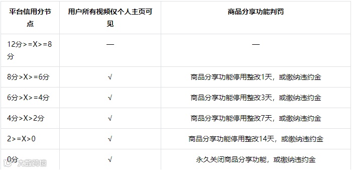 信用分节点及处罚措施(图源:抖音电商学习中心)