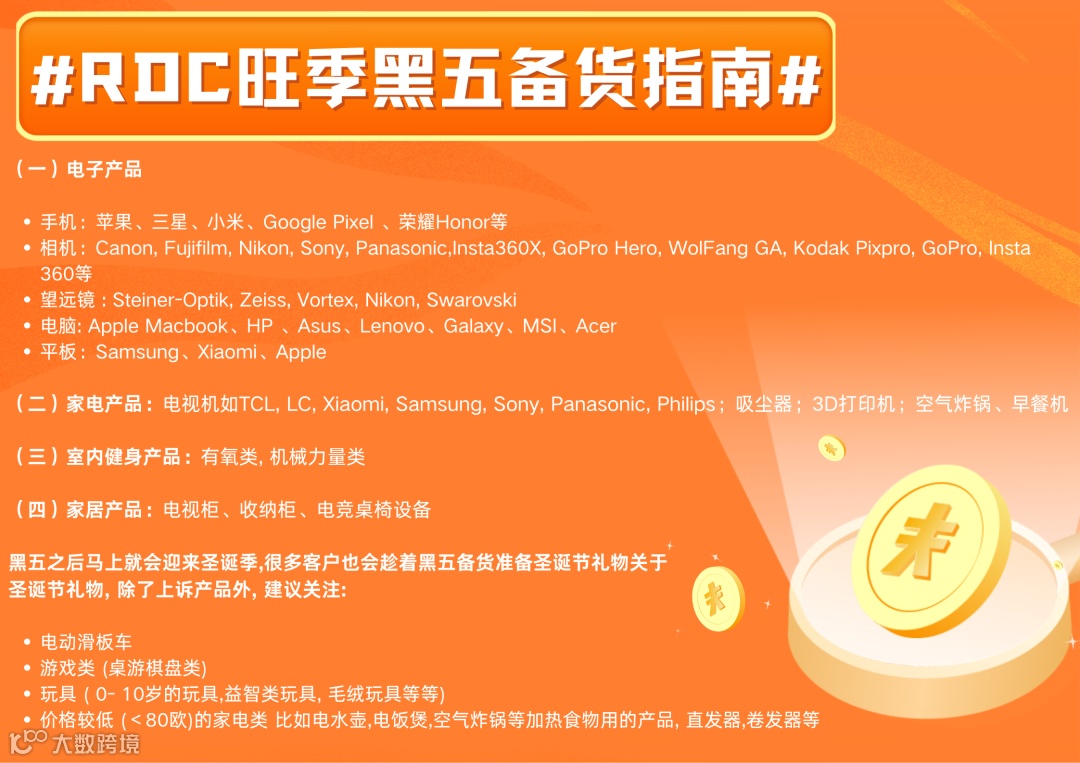 同时,为帮助卖家拿下旺季黑五大促,平台结合往年热销品类和最新的市场趋势和消费者行为分析,提供了黑五选品备货指南,助力卖家抢占先机!