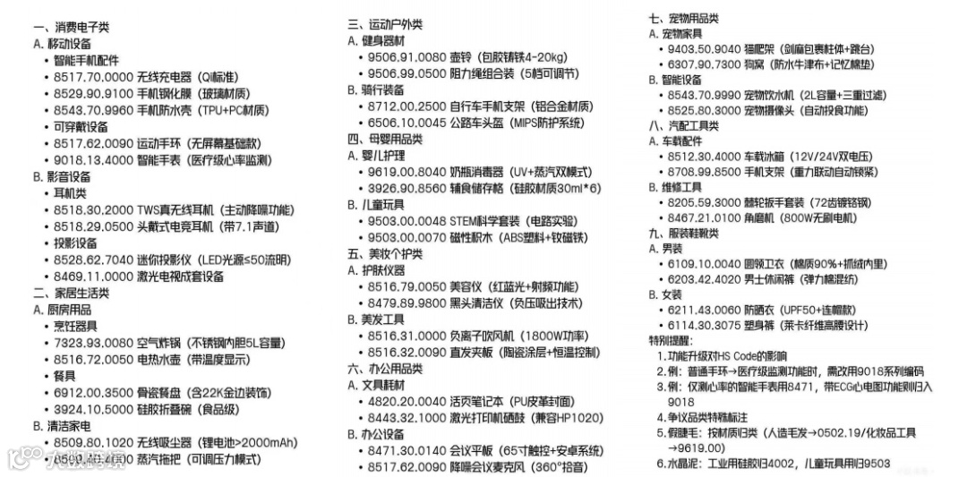 关税查询标准化流程及多品类HS编码详情请参考附图。