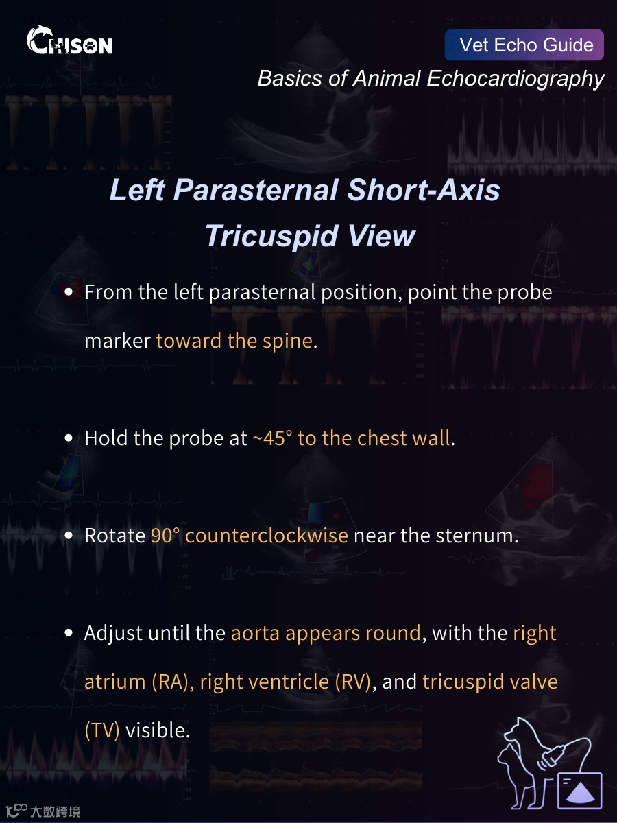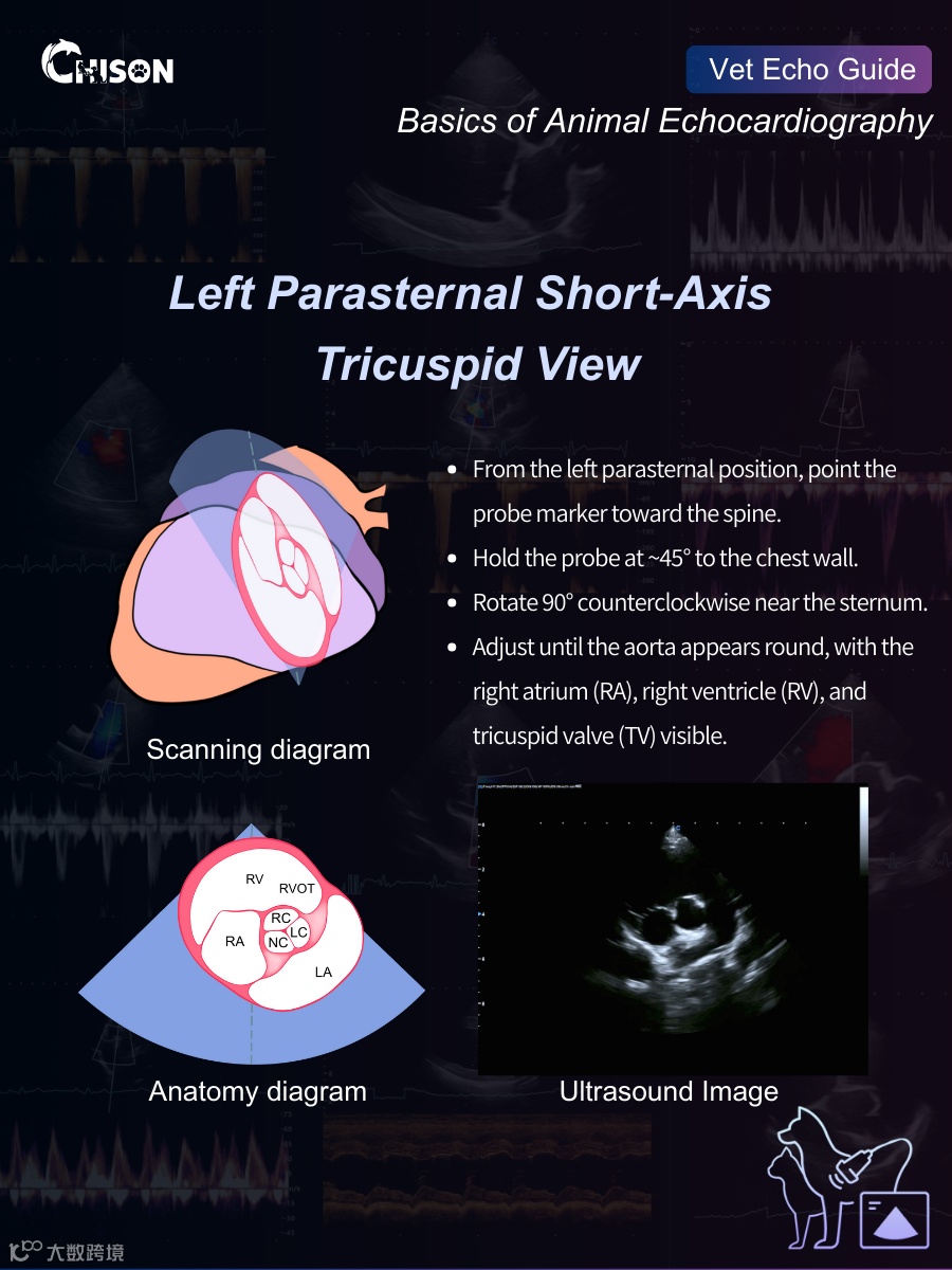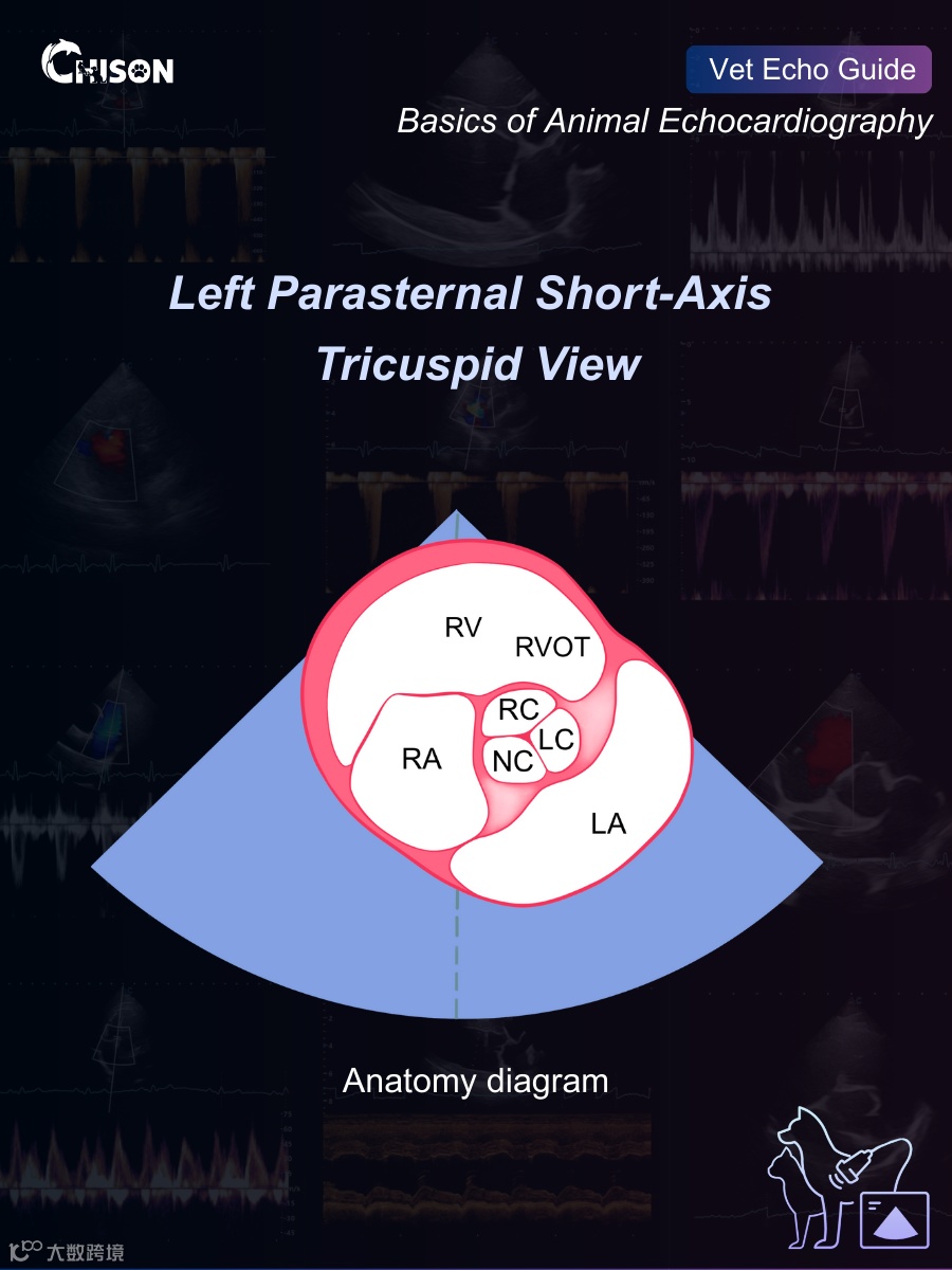 Right-sided valve evaluation is a key component of complete cardiac scanning, and this short-axis view provides an excellent angle to observe the tricuspid valve and inflow structures.
