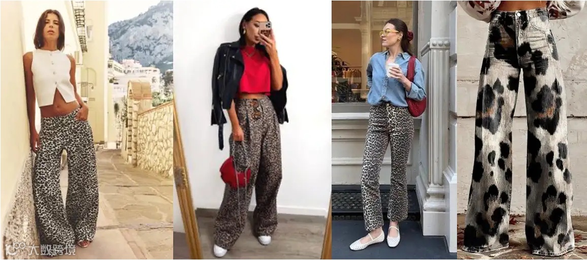 豹纹是被普遍认为具有时尚气息的元素,豹纹牛仔裤则是热度增长最多的时尚单品。从Pinterest呈现的搜索结果来看,不同款式的豹纹牛仔裤在时尚达人的花式搭配下,展现出了多样的时尚风格。