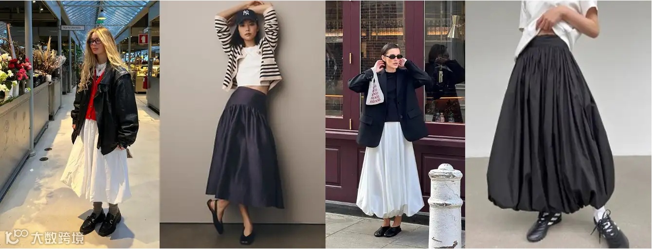 气球裙是蓬松元素中最受关注的时尚单品,但不一定是众多蓬松元素中销量最高的单品类别——从搜索意图来看,我们搜索一个单品的原因除了搜集购买灵感(未购买),还有一个可能是搜集搭配灵感(已购买);因此,利用这一趋势提升购买转化时需注意,不要一味追求时尚度,而应该尽量使用常见的单品、做简单的搭配,以提高潜在客户购买的可能性。