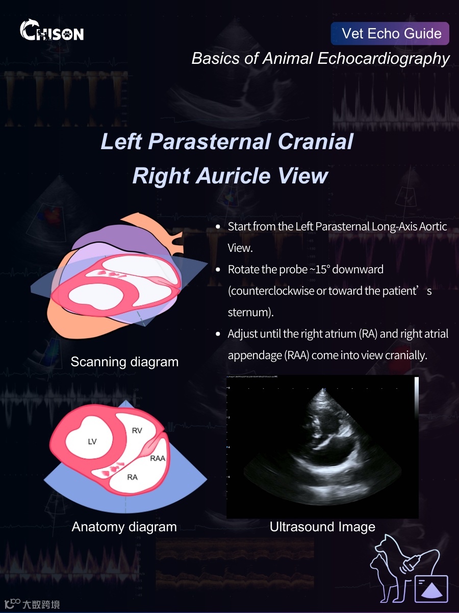 Understanding right atrial anatomy is essential in small-animal echocardiography, and this view offers a focused look at the cranial right atrium and its appendage.