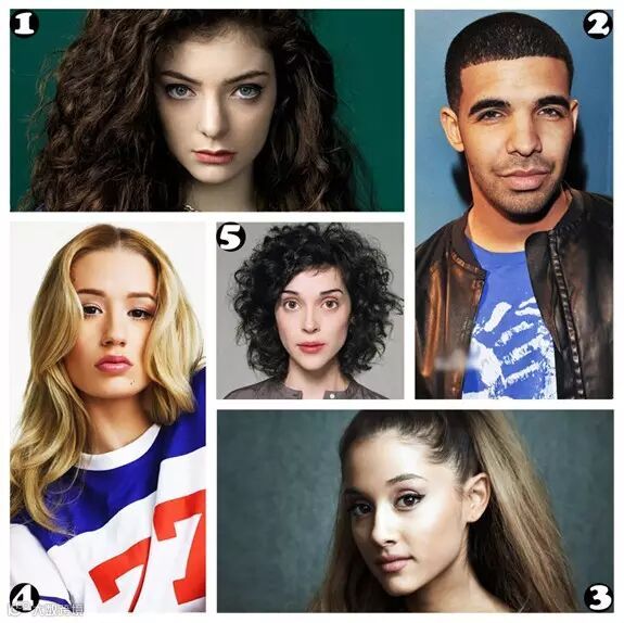 - Lorde:18岁的新西兰歌手,凭《Royals》走红,首专《Pure Heroine》全球售出270万张。