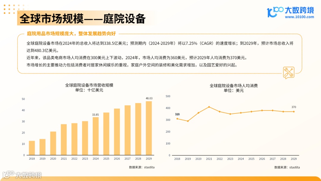 想要获取全部内容,可以关注【大数跨境】公众号,回复【2024全球庭院用品市场洞察报告】免费下载原报告,查看完整版。