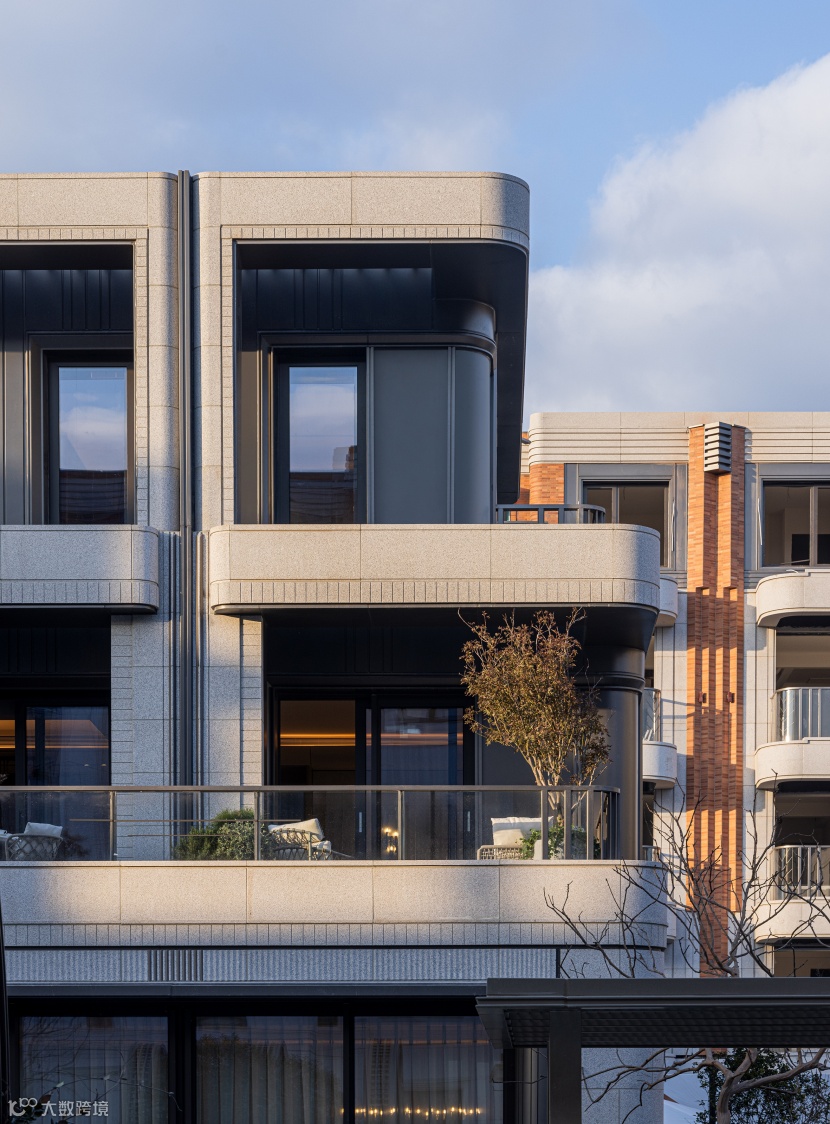 ——百年传世的摩登美学:致敬经典ART-DECO设计手法,将横向流线与纵向分割完美融合的院墅立面,在视觉上更为摩登现代。白色石材、复古红砖、流线型阳台的灵感碰撞,再现海派地标风貌。