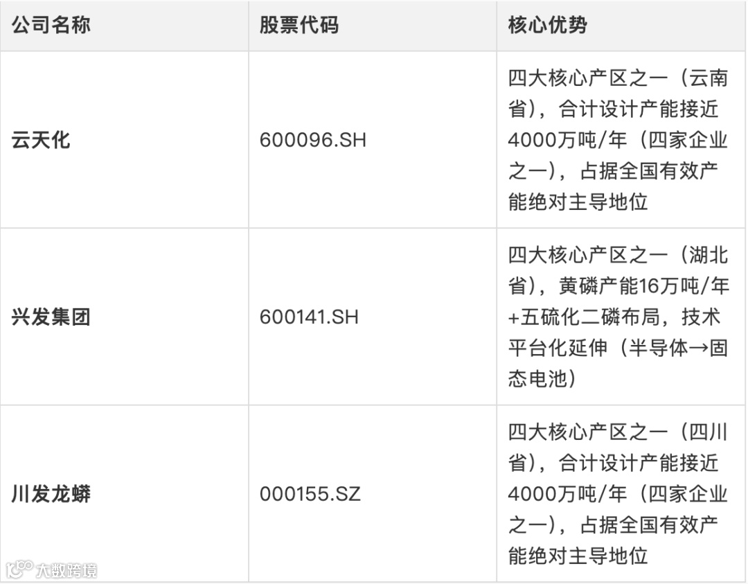 贵州磷化集团、云天化、兴发集团和川发龙蟒等几家大型企业。