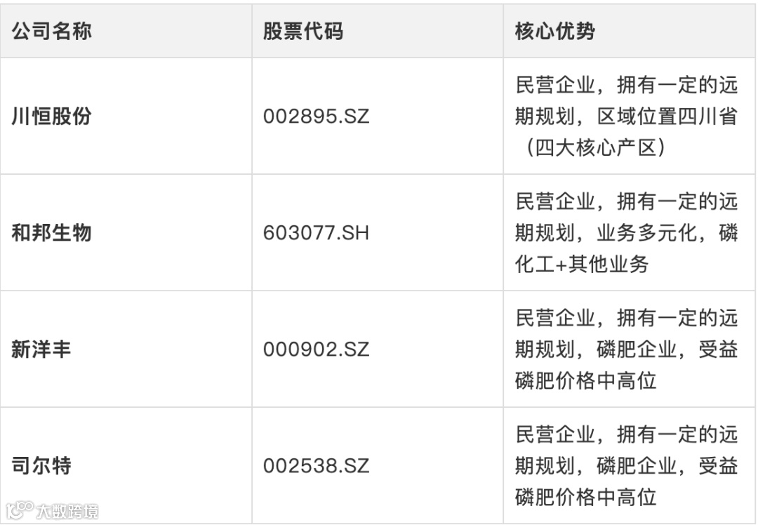 核心标的,川恒股份、和邦生物、新洋丰、司尔特。