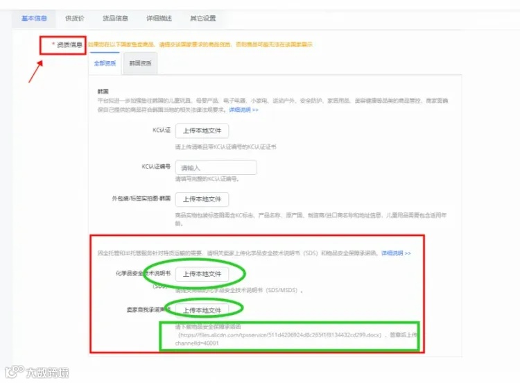 1)商家后台全托半托发品后台,资质信息,找到对应上传入口