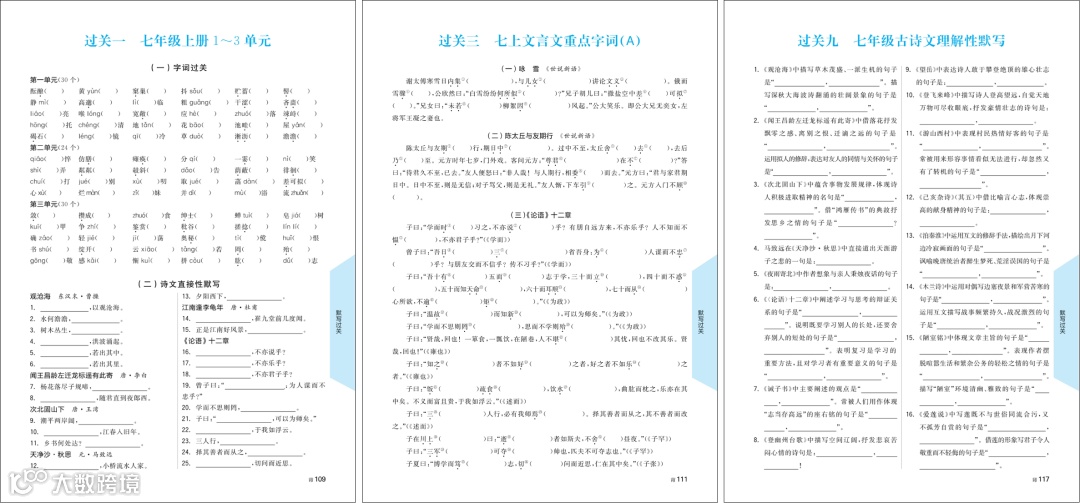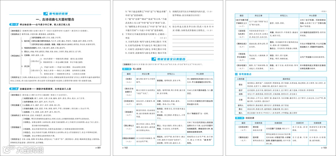 古诗文版块将课内古诗词、文言文进行分类整合,构建大单元复习,在横向对比中理解诗文内涵,在纵向梳理中夯实基础。