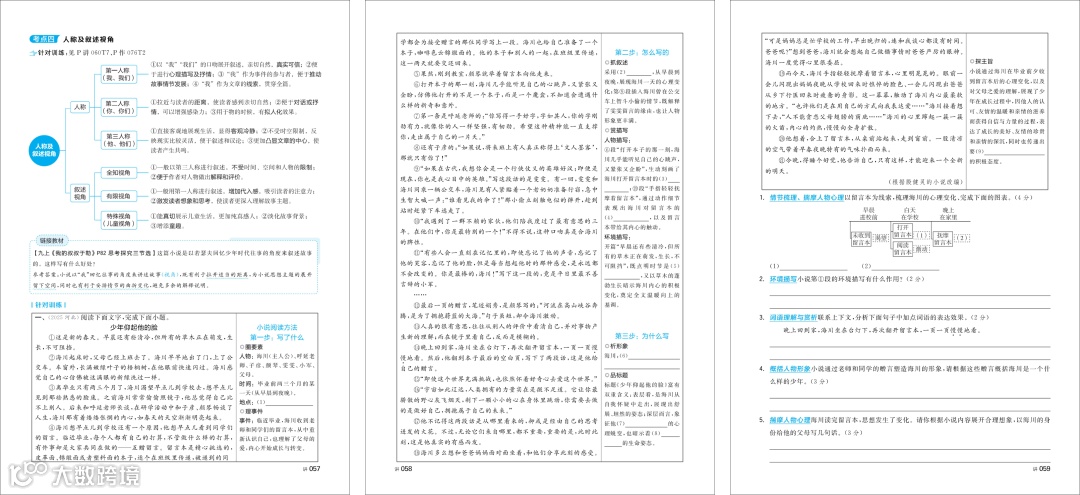 《专题精讲》文学作品阅读含“阅读方法指南”“高频考点讲解”,以导图呈现答题方法,每一考点均配备对应训练,通过检索标签迅速找到对应题目,及时检验学习效果。