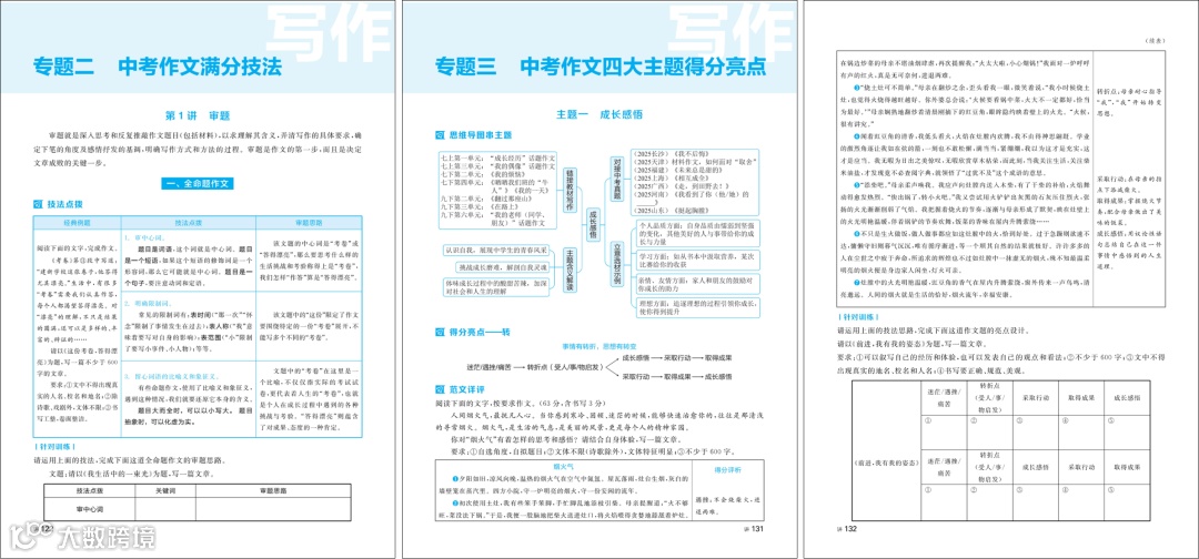 写作部分深入解读 “审题 - 立意 - 选材” 三步走策略,针对“成长感悟”“情感体验”“文化传承”“家国情怀” 四大高频写作主题,解析作文四大主题得分亮点。