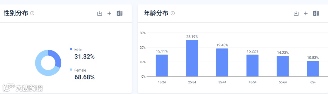 从地区分布来看,美国占据市场份额最大,达44.31%。受众中男性占68.68%,女性占31.32%,最大的访问者年龄组为25-34岁。