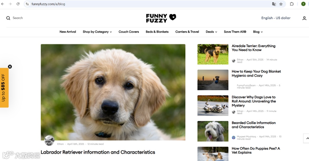 “Fuzzy Pedia”板块,主要发布宠物百科相关内容,体现品牌独立站专业性;
