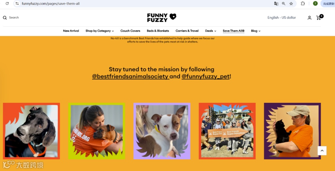 FunnyFuzzy与英国多家知名动物慈善机构(如Dogs Trust、Battersea等)合作,并发起"For Better Fuzzy Lives"公益项目,定期捐款并将热销产品纳入捐赠计划。