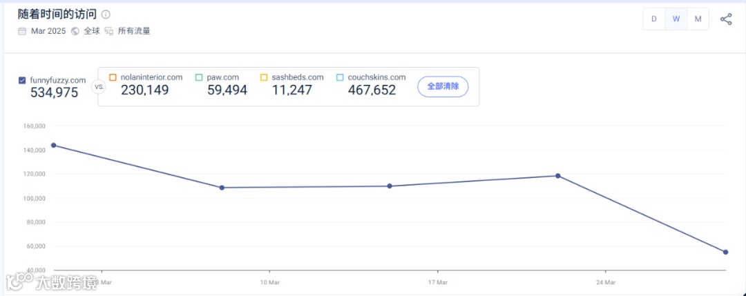 Similarweb数据显示,2025年3月,Funny Fuzzy全球总访问量达53.4万次。流量来源主要是直接访问、付费搜索社交媒体,直接流量占比最多,占31.56%。