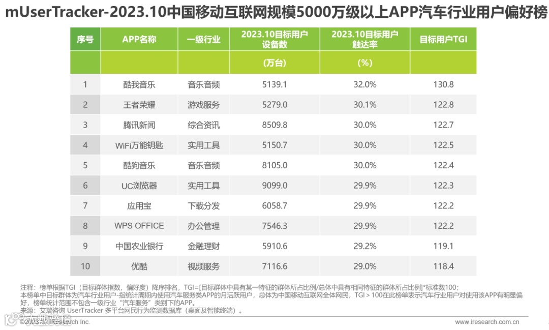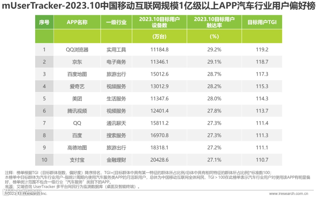 2023年10月汽车行业用户APP喜爱榜