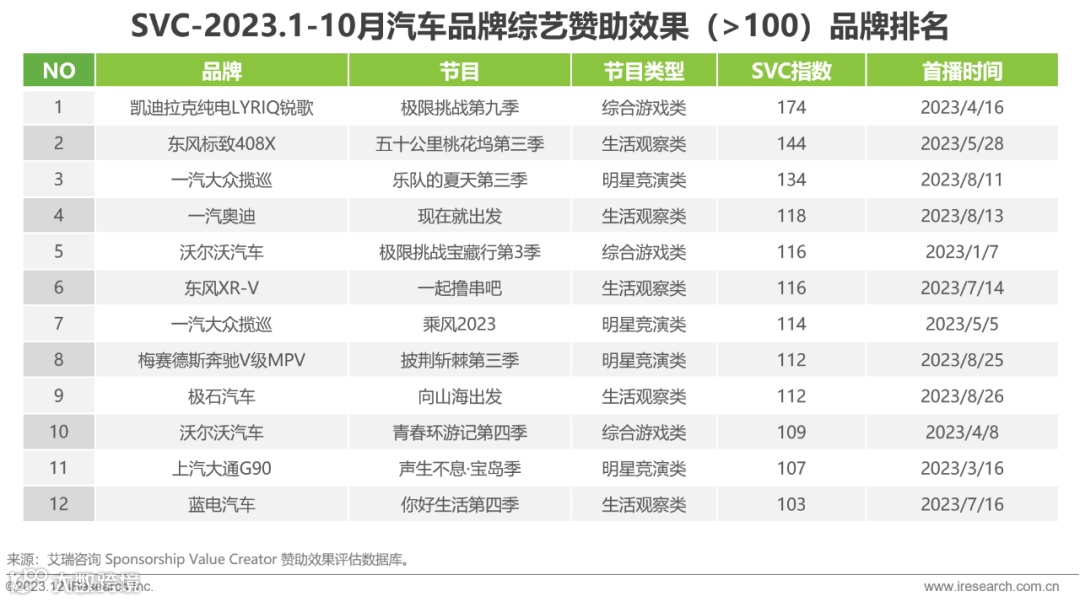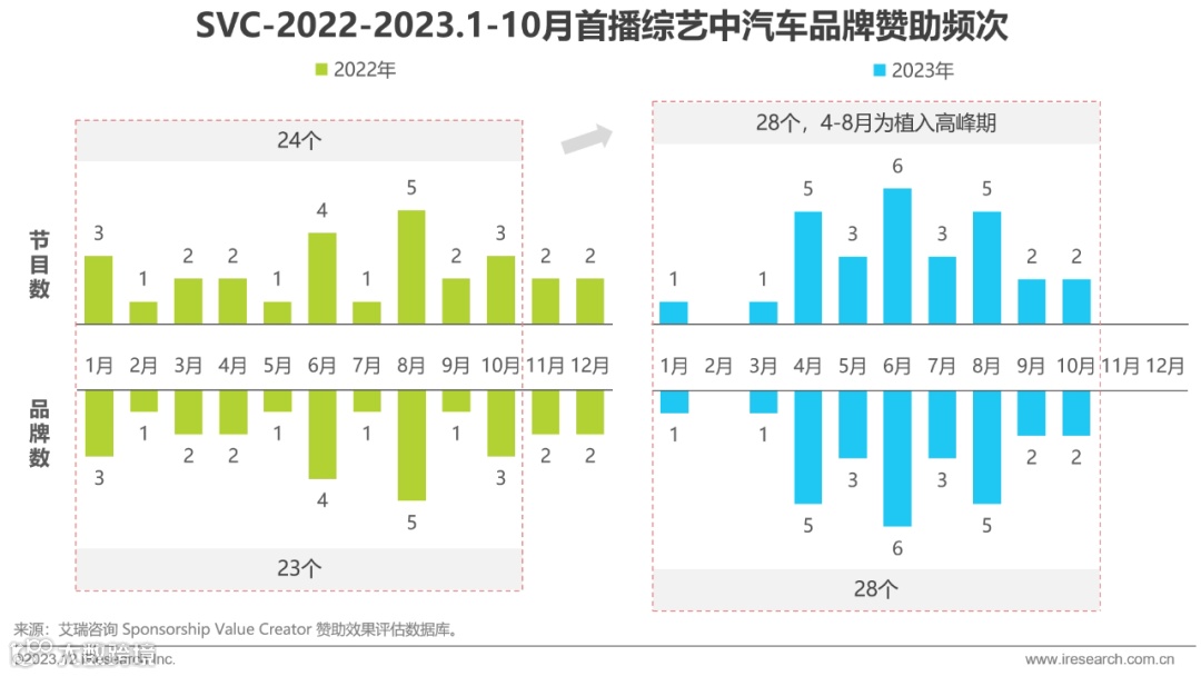 前10个月共28个汽车品牌赞助综艺节目,数量同比增长。品牌多采用单品牌单车型深度植入方式,实现产品功能自然曝光。
