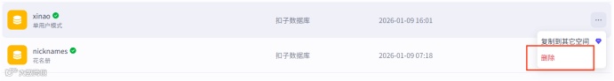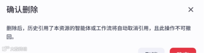 删除某个数据库后,引用了该数据库的智能体或工作流也将自动取消引用,且此操作不可撤回,请谨慎操作。