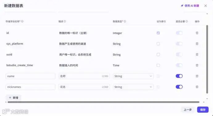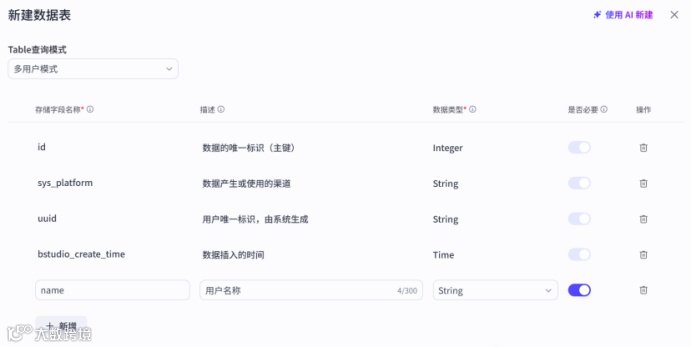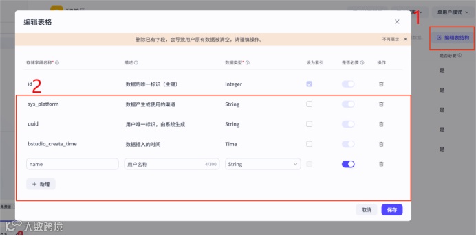 如果需要新增、修改、删除字段,可以通过编辑表结构的方式实现