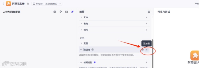 5.添加数据表到智能体