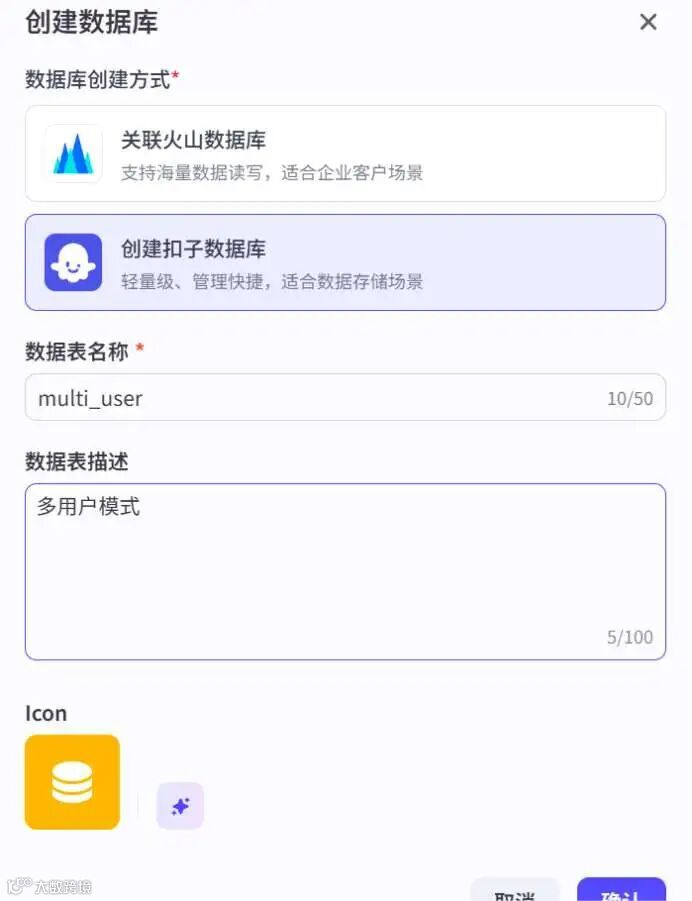 扣子支持使用扣子官方数据库和火山数据库。