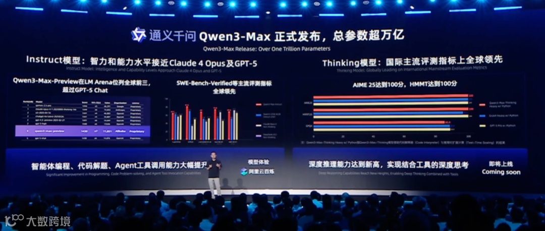 就在上个月,在2025云栖大会上,阿里正式对外发布了Qwen3-Max,这一模型性能超越GPT-5和Claude Opus 4,跻身全球前三。
