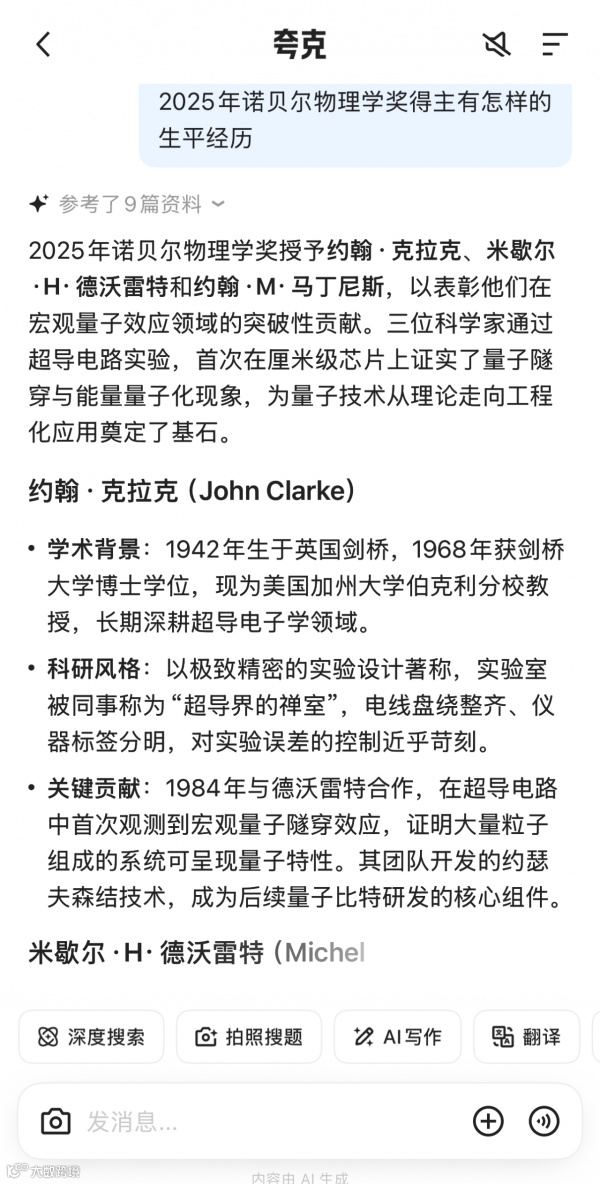 据悉,为了确保生成内容的专业度,夸克算法团队已经与通义实验室成立了联合研发小组,专注于搜索推理与可信生成。